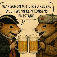 Klar, Neumitglieder würden sich richtig drüber freuen bei dem kleinsten Anlass als Putinfreund oder Hamasverehrer oder als Nazi tituliert zu werden. Das ist doch überhaupt erst der Grund, warum ich mich zurückhalte. Aber nicht, weil ich nicht den Mumm habe zu sagen was ist. Ich bin kaum hergekommen, da musste ich mir monatelang anhören, dass ich angeblich einer Frau nachstelle und sie bei ihrem AG angeschissen habe. Ich würde mir eher die Hand abschneiden, bis ich mich auf so ein Niveau herablasse. Da rede ich nicht davon was noch so alles vorgefallen ist. Ich sag nur, Billigung von Kriegsverbrechen (bis heute ist auf die Argumente nie einer eingegangen).